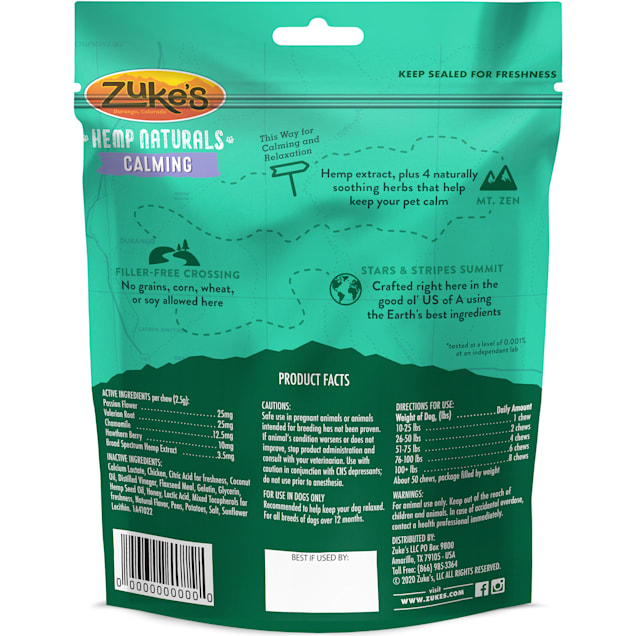Hemp Naturals Calming Peanut Butter Flavor Zuke S Natural Dog Treats Chews
